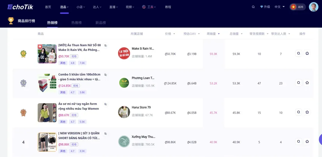 想了解更多越南达人,可登陆 Echotik 后台查看~