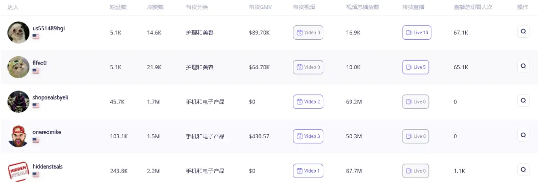 但从数据表现情况来看,该产品建联的大多数头部达人带来的实际转化效果并不如粉丝体量小的中尾部达人。过去 30 天内,带货 GMV 第一名的达人 @lycheeshoppin 仅有 3 万+的粉丝数,但却通过 9 条合作视频为产品带来了 6000 多万的曝光和 25 万+美金的 GMV,大幅带动了产品销售。