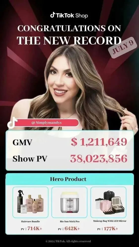 当然,Mandys 的火爆,背后离不开国内运营机构的支持,还有 TikTok Shop 为打造标杆,提供的配套流量。从 6 月开始,在各方的合力之下,Mandys 成为了美区直播界的“天选之女”,迎来了泼天的富贵!