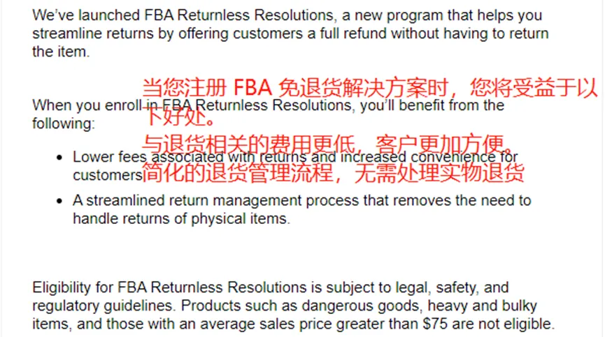 据了解,仅退款功能适用于售价低于 75 美元的产品,像高价商品、危险品及重型大件商品等暂不纳入此服务范畴。