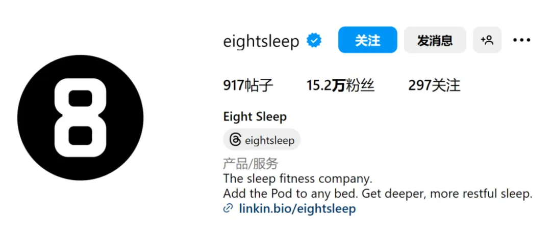 在 Instagram,除发布明星运动员的种草小短片以外,Eight Sleep 还标榜能通过解决因打鼾引起的夫妻矛盾,为家庭定分止争探索了新路径,诚意满满的脑洞让官号吸粉 15 万+。
