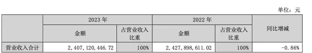 2023 年,哈尔斯营业收入为 24.07 亿元,同比下降 0.86%,归属于上市公司股东的净利润为 2.50 亿元,同比增长 21.31%。