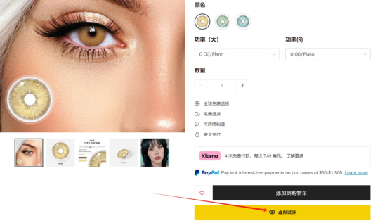 除此之外,TTDEYE 还通过采用先进的 AR(增强现实)技术,让消费者在线上就能轻松试戴各种款式的美瞳。用户在试戴满意后可以直接跳转至购物页面下单,这样的流程设计有效减少了用户的流失,同时提高了网站订单的转化率。