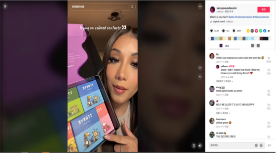例如,TikTok 上拥有 600 万粉丝的头部达人 @sassysoundsasmr,发布的关于 TTDEYE 的测评推广视频就获得了不错的反响,为品牌带来了大量的流量。