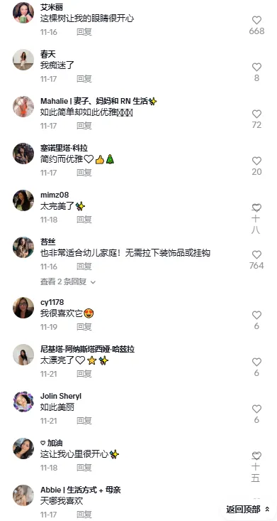 在评论区,网友们被这款蝴蝶结圣诞树装饰的美感所惊艳,称其既简单又优雅,更有网友表示这是一棵独特的“风骚美学”圣诞树。