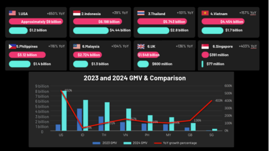 更惊人的是,美国市场的平均订单价值为 19.64 美元,是东南亚市场的四倍。这意味着美国消费者不仅有更高的购买力,也愿意为优质商品买单。