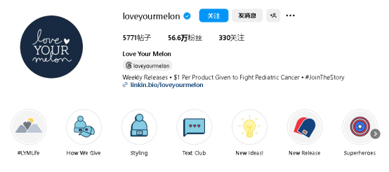 起初,Love Your Melon 的知名度并不高,更多是在校园内进行传播。首次突破发生在 2013 年,当时品牌开始借助 Facebook 和 Instagram 这些社交媒体平台进行推广,在这些平台上,Love Your Melon 通过高质量的视觉内容和有温度的品牌公益故事,吸引了大量消费者,不仅向用户展示产品,还传递了一种“参与公益,关爱他人”的情感,让消费者感到自己在为某个有意义的事业贡献力量,成功培养了大量忠实粉丝。