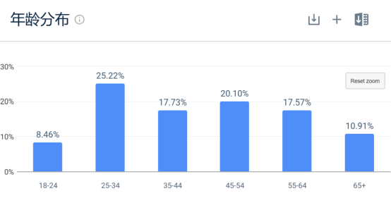 Similarweb 数据显示,Ember 独立站的受众画像中,男性占比达 51%,女性占比达 49%,性别比例相对平衡。其中,“25-34”、“35-44”、“45-54”三个年龄段的用户占比最高,分别为 25.22%、17.73%、20.10%。
