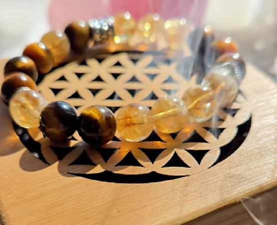 在 TikTok 镜头里,一位卖家将黄水晶、虎眼石珠子倒入容器,“珠落玉盘”后,他迅速搭配配件、串上鱼线,最后用烟雾 “净化”,至此,一条承载着福气、寓意扭转运势的手链便大功告成。