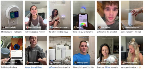 在 TikTok 上,Pura 则“接地气”一点,通过用户测评,开箱体验等多种形式,结合日常生活场景去拍摄短视频,生动形象地展示产品的用途,匹配年轻一代用户的内容偏好,实现种草转化。